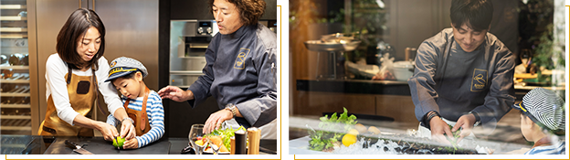 | クラス | ムッセル(ムール貝)調理法についてのクラス ゲストシェフによるクラス GAGGENAU(ガゲナウ)の機材を使ったお菓子、肉料理のクラス Hermit Gin を使ったカクテルクラス ゲストバーテンダーによるカクテルクラス KIDS料理クラス 親子料理クラス |